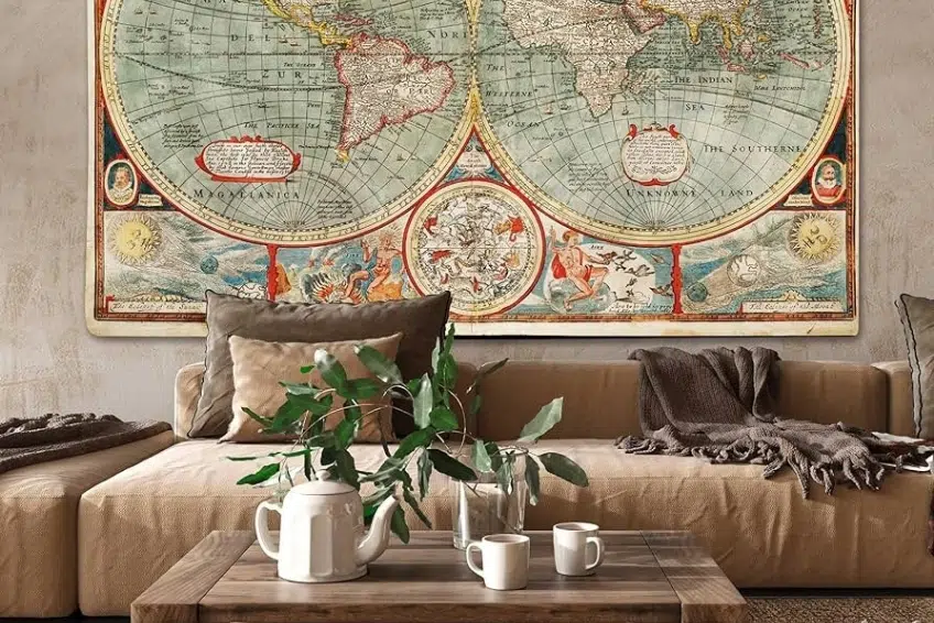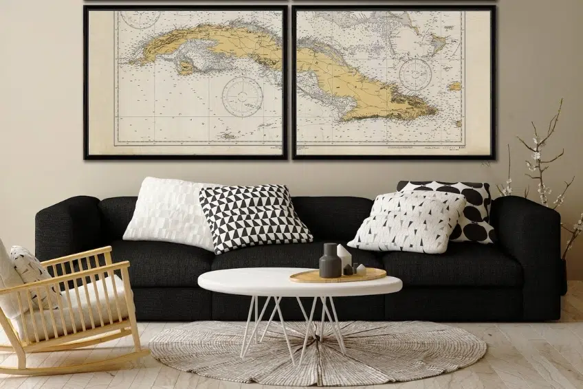 As a functional art piece in a living room, a large, antique nautical chart becomes a focal point, sparking conversations and daydreams about setting sail to distant corners of the globe. The intricate details of these maps—be it the contour of coastlines or the marking of treacherous reefs—enrich the home with a sense of journey and discovery.