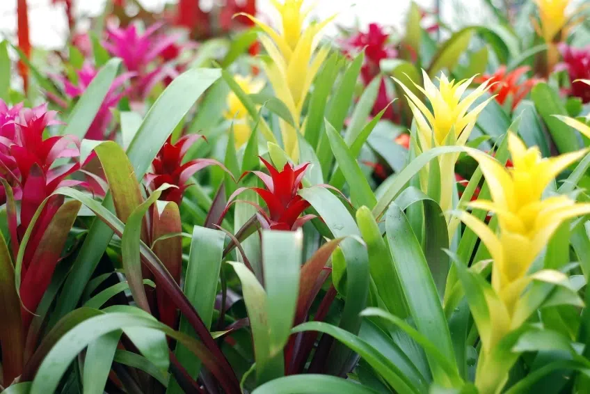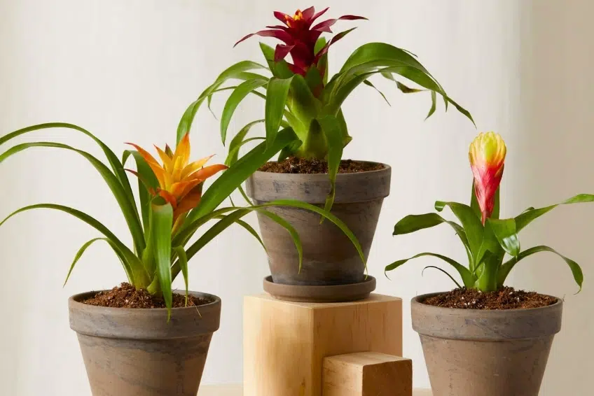 Bromeliads are the tropical decor’s bright spots. Their vibrant colors and unique, lasting blooms add an exotic touch to any space. These hardy plants are incredibly versatile, thriving under a variety of lighting conditions and requiring minimal care, making them perfect for busy homeowners seeking a splash of color.